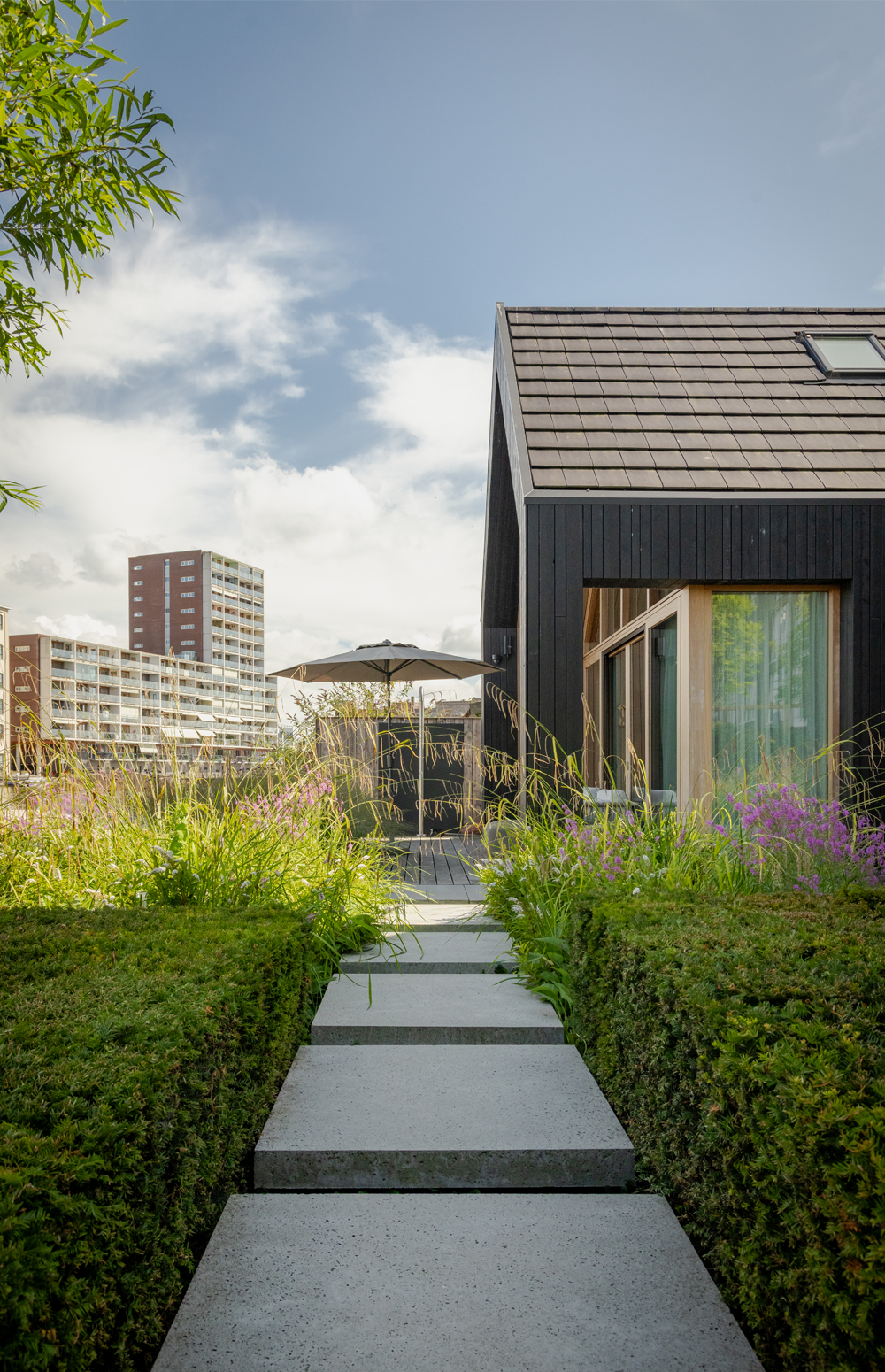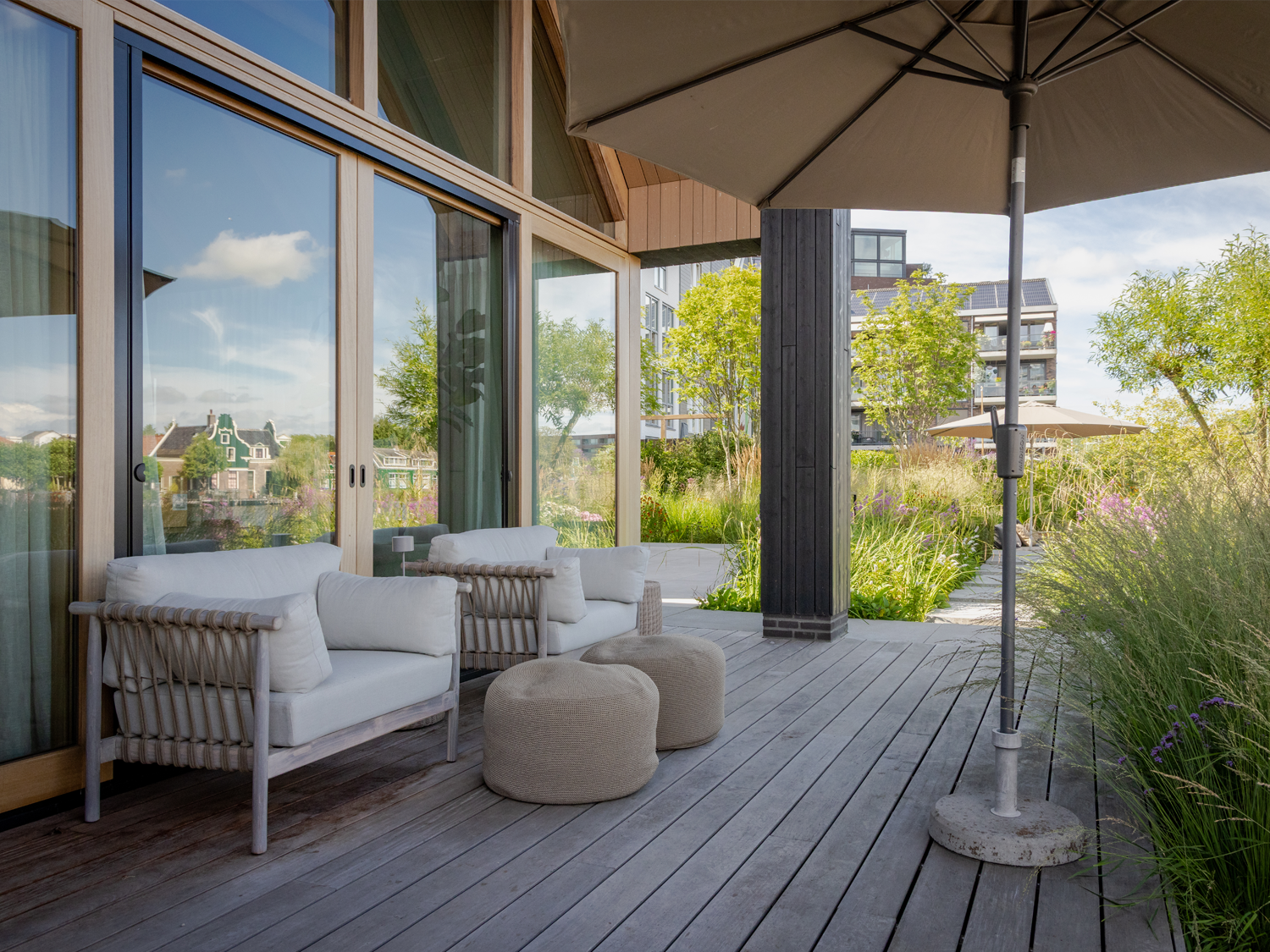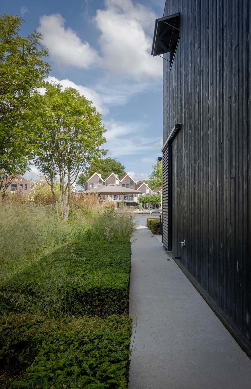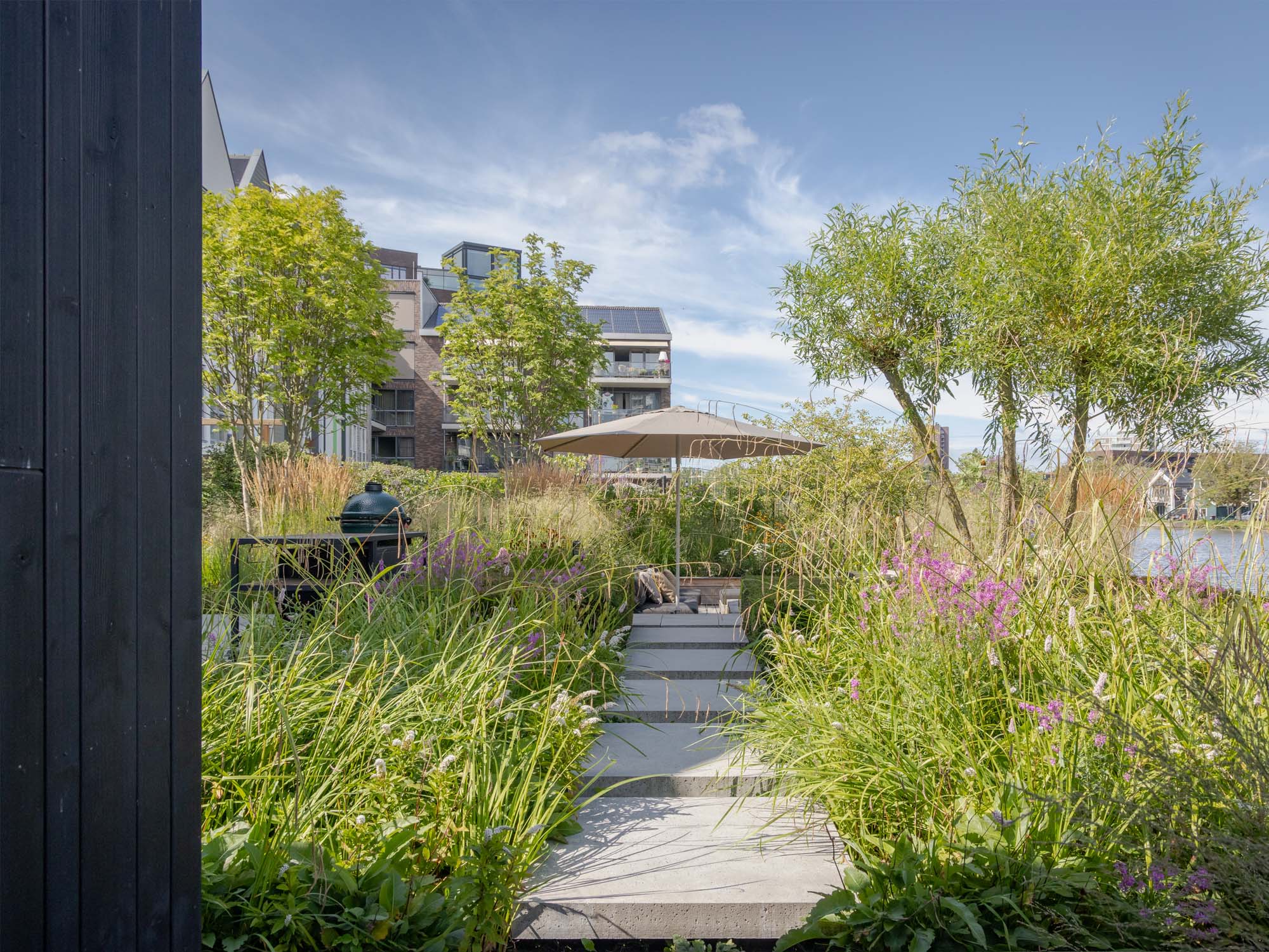 Voor een villa aan de Zaan hebben wij de realisatie van deze tuin mogen verzorgen. Het ontwerp is van Studio REDD, de woning zelf is ontworpen door Studio Piet Boon. Connectie met zowel het interieur van de woning als met het water was de grote uitdaging tijdens dit project. Door twee betonnen lopers als zichtlijn richting de Zaan te laten sturen wordt de connectie met het water gemaakt. De natuurlijke borders staan prachtig in contrast met de minimalistische woning.